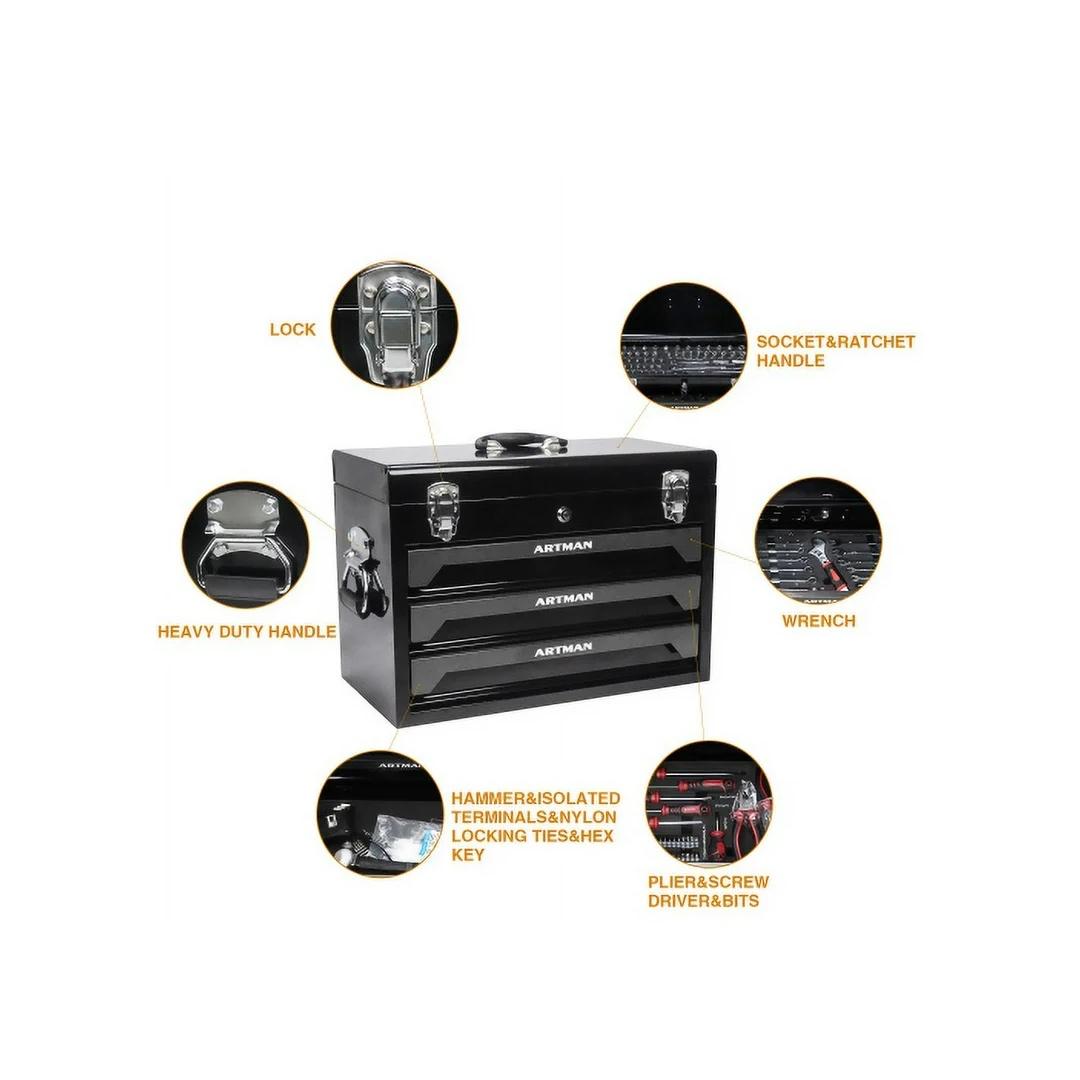 Campfun Set 439 Pezzi – Cassetta Attrezzi Meccanici 4 Livelli con Cricchetto, Pinze e 3 Cassetti, Kit Completo per Casa e Officina