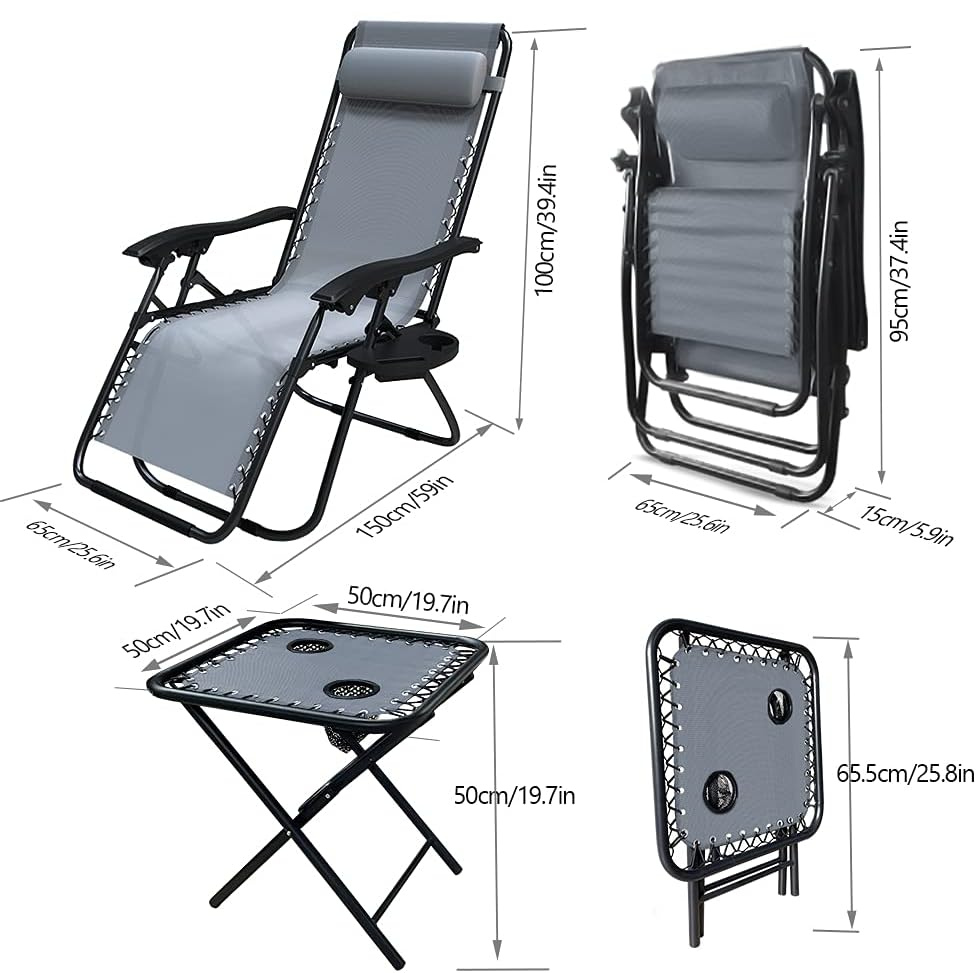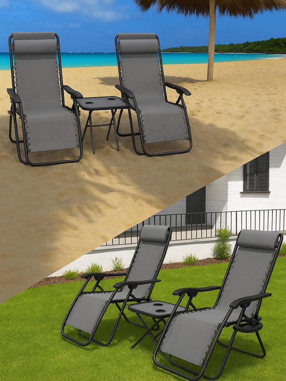 SET COMPLETO: Rilassati con questo set da 3 pezzi, che include 2 sedie da giardino e 1 tavolino pieghevole. Ideale per sedersi e rilassarsi in giardino, piscina, terrazza, balconi e altri spazi interni o esterni.