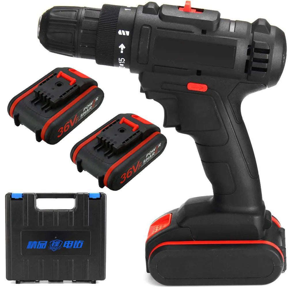 Trapano Avvitatore a Batteria 36V con Torcia, 2 Batterie e Valigetta